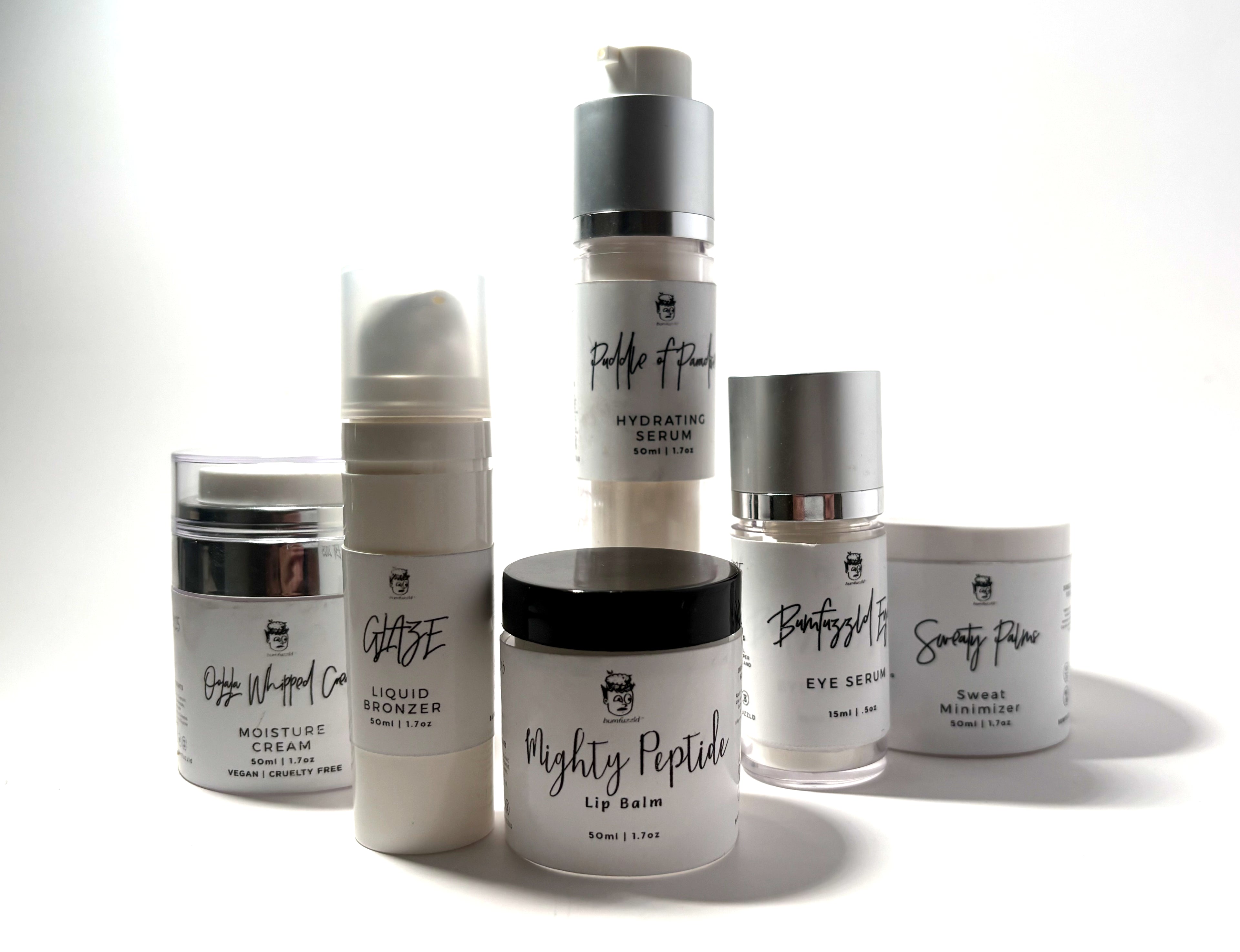 Serums, gels, and facial creams used to manage and reduce redness and...